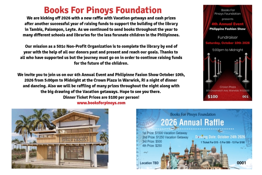 At books for Pinoys Foundation, we are a 501C organization based in Warwick, Rhode